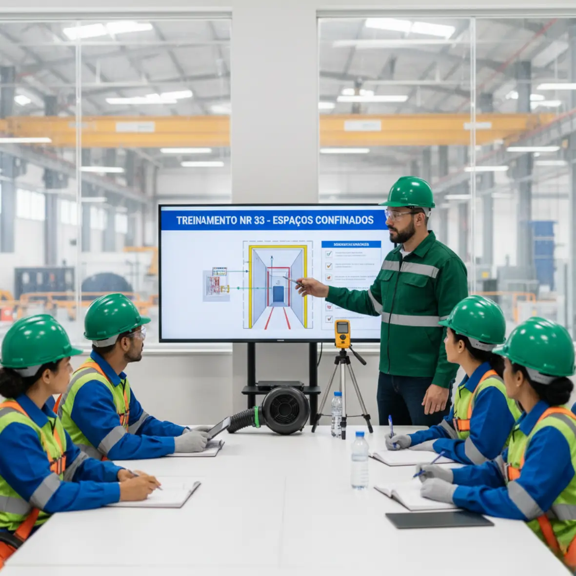 • NR-33 – Espaços Confinados: Treinamento teórico e prático para entrada, monitoramento e resgate em espaços confinados. Aborda análise de atmosfera, uso de detectores, plano de emergência e permissões de entrada.